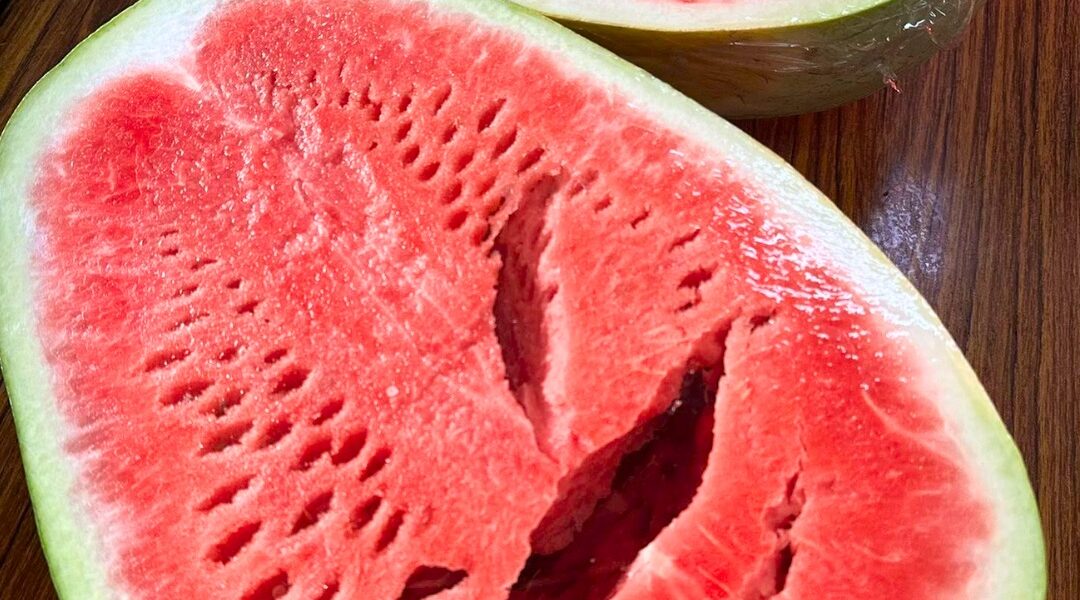 Das bedeutet, dass eine Wassermelone, auch wenn sie von außen in Ordnung aussieht, im Inneren Risse und Beschädigungen aufweisen kann.