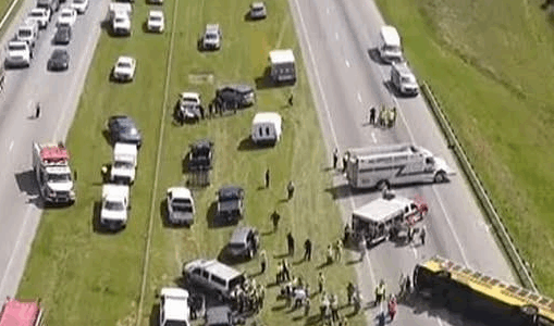 „Mehrere Kinder nach Überschlag des Schulbusses auf der Rückfahrt von einem Ausflug eingeklemmt“