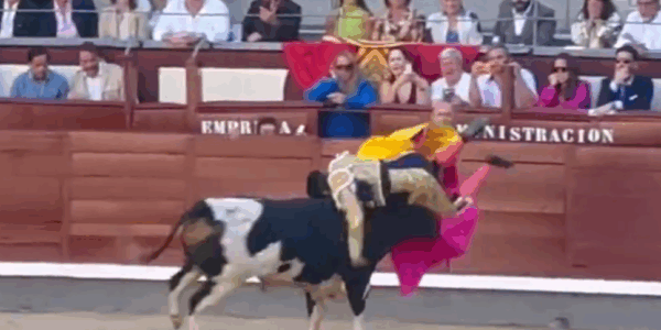 Stierkämpfer von Stier aufgespießt und in die Luft geschleudert – mitten während einer Corrida